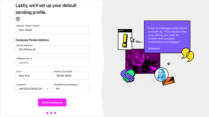 すべてのマーケティングメールはこの名前から送信され、ユーザーはあなたを認識できるようになります。ここにあなたの名前を追加することをお勧めします。