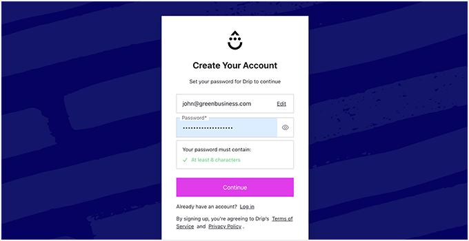 次に、新しいドリップ Eメール マーケティング アカウント用の強力なパスワードを入力する必要があります。