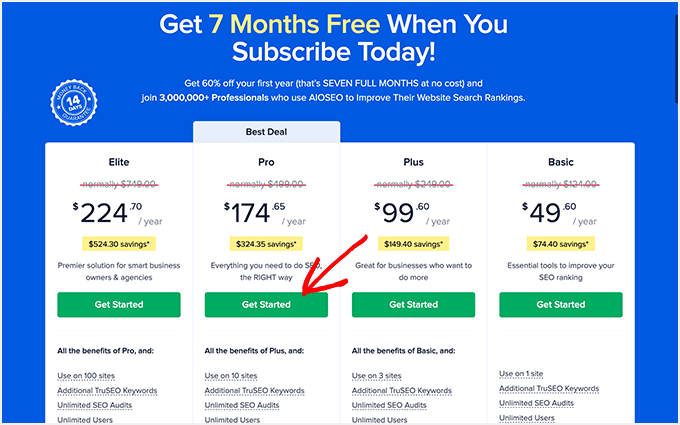 WordPress SEOのニーズに最適なプランを選択できます。当社の50%割引は、すべてのAIOSEOプランに適用されます。