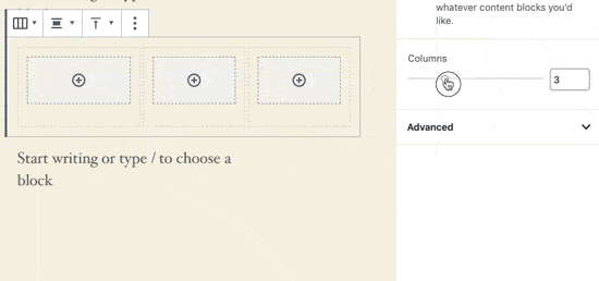 The add new block placeholder inside each column is also cleanly visibly, making it easier to create complex multi-column layouts.